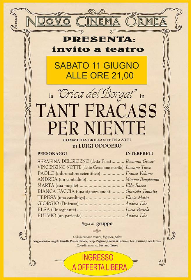 La Compagnia del Borgat di Mondovì presenta la commedia "TANT FRACASS PER NIENTE"