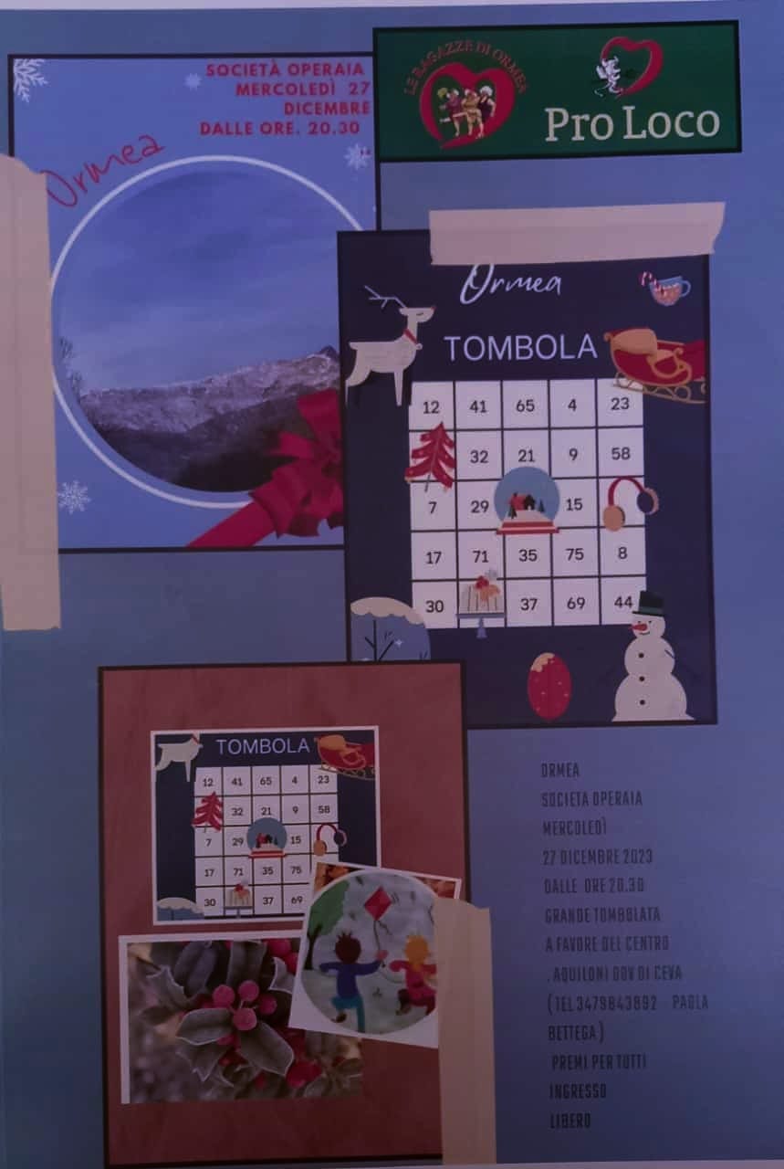 Presso la Sala Società Operaia alle ore 20.30, Grande Tombolata a favore del Centro Aquiloni di Ceva