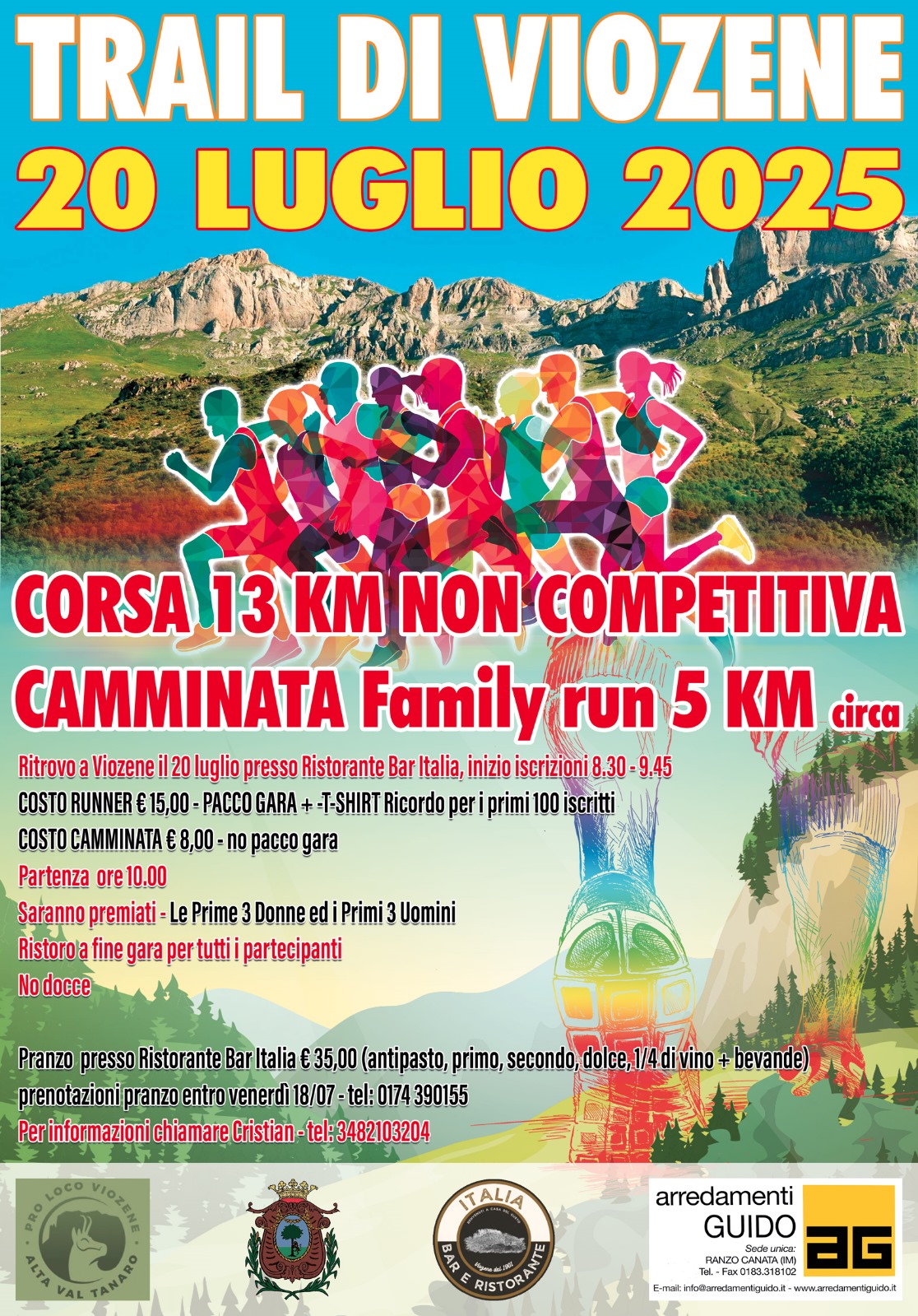 Domenica 20 luglio a Viozene corsa di 13 km. non competitiva e camminata Family Run di circa 5 km