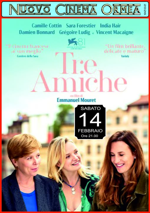 Sabato 14 febbraio alle ore 21.00 proiezione del film "Tre Amiche" presso il Nuovo Cinema Ormea.