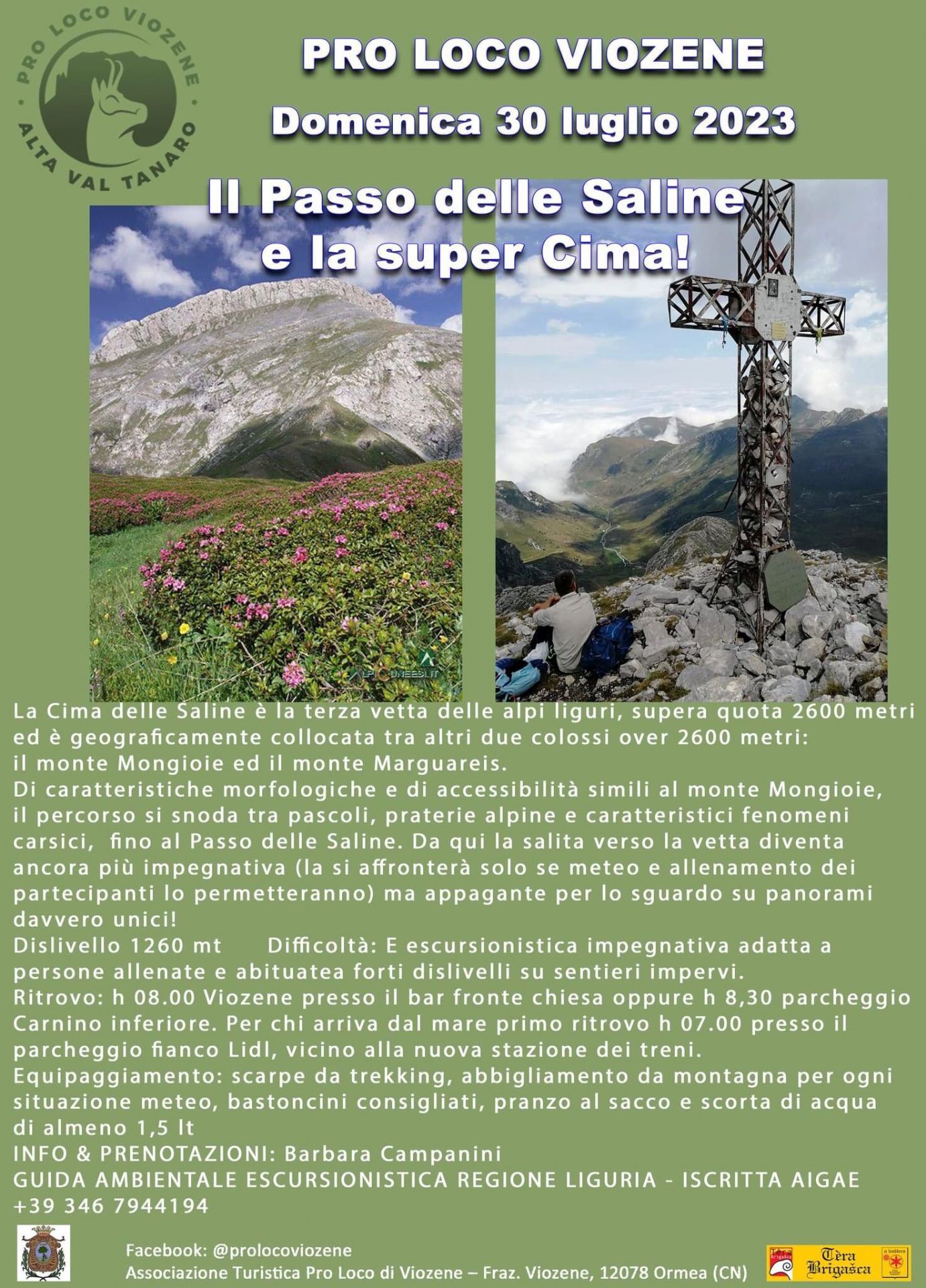 La Pro loco di Viozene organizza un trekking in collaborazione con la Guida escursionistica Barbara Campagnini sul Passo delle Saline e la super Cima