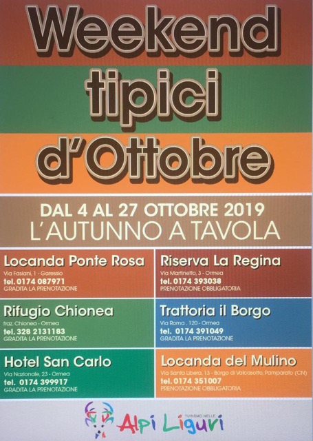 “L'Autunno a Tavola”. Nel mese di ottobre ristoranti e rifugi propongono 4 fine settimana all’insegna del gusto e della tradizione con menù a base di prodotti tipici del Consorzio per la Valorizzazione e la Tutela dei Prodotti Alta Valle Tanaro.
